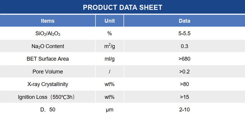 The post-treated and modified Y-type zeolite is the main active component of the fluid, catalytic cracking catalyst. Y-type zeolite is also applied to hydrocracking, is omerization and alkylating catalysts. The NaY zeolite without the exchange and modification is an efficient desiccant.